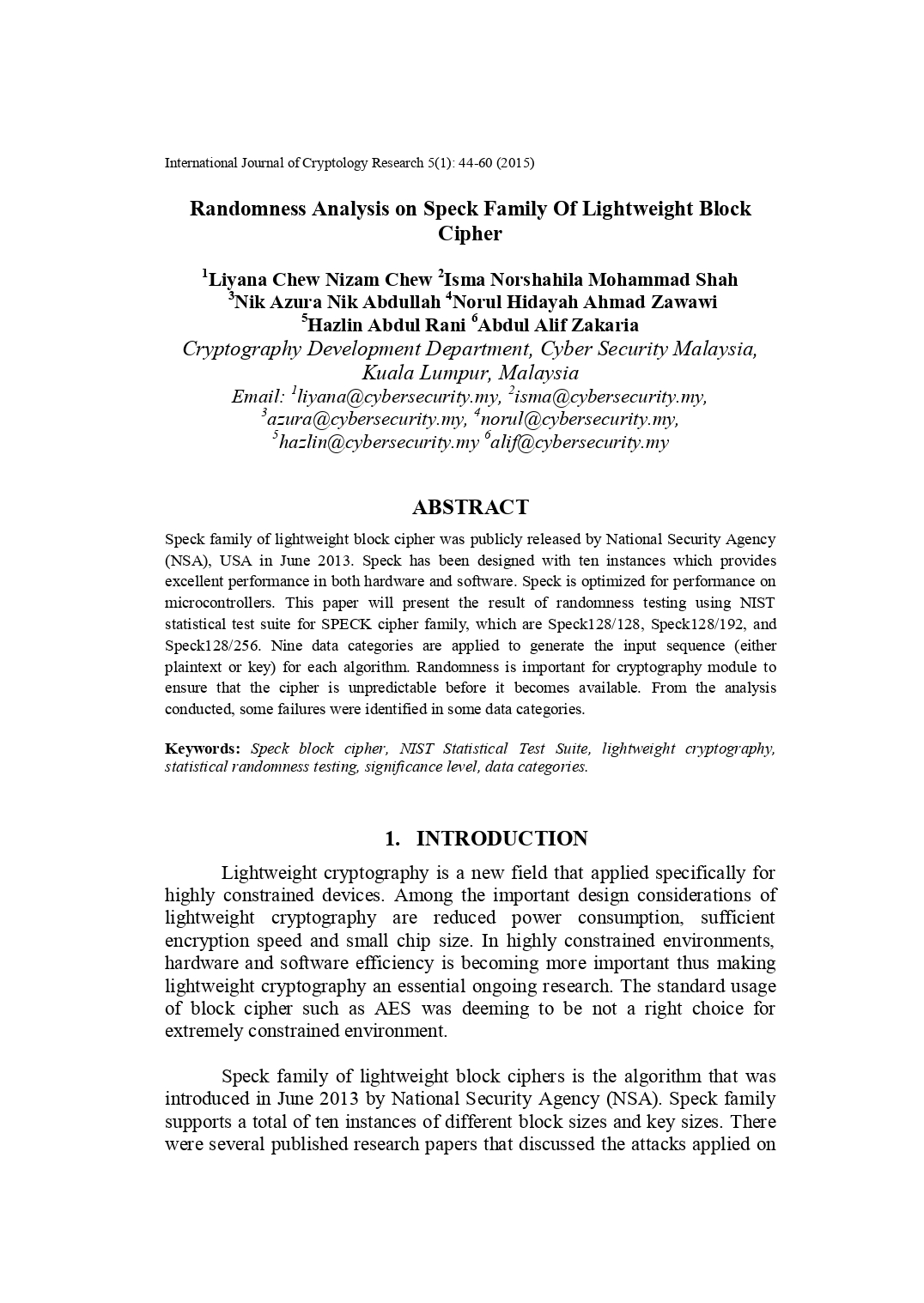 Publication : International Journal of Cryptology Research No 5 Issue 1