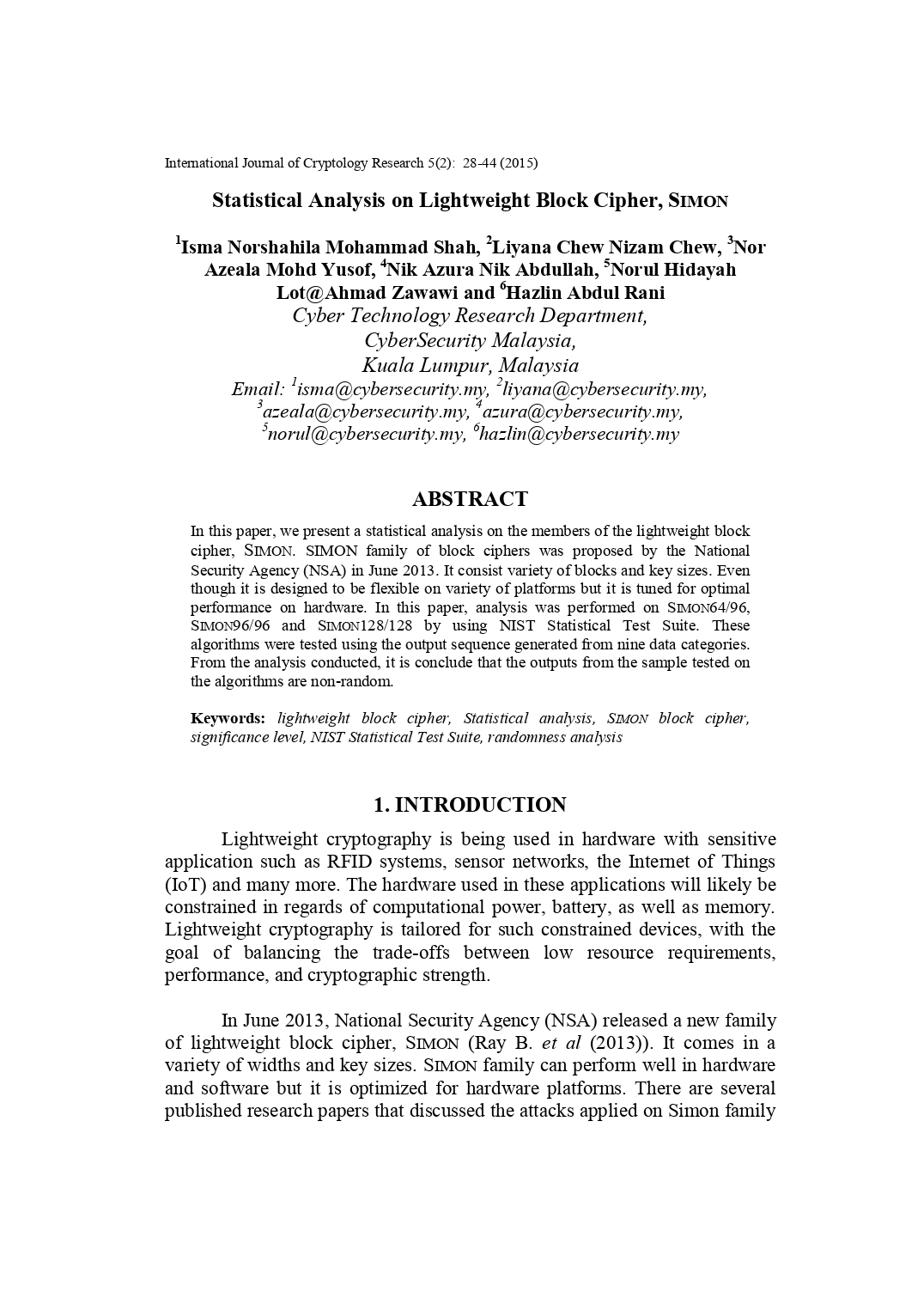 Statistical Analysis on Lightweight Block Cipher, Simon