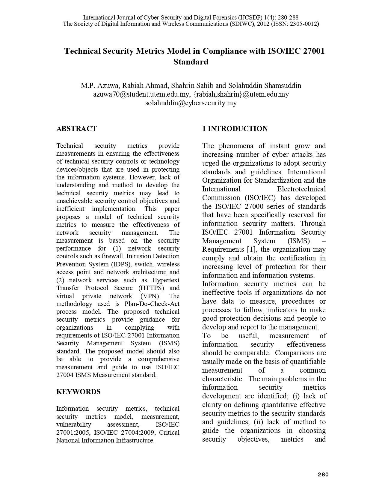 Technical Security Metrics Model in Compliance with ISO/IEC 27001 Standard