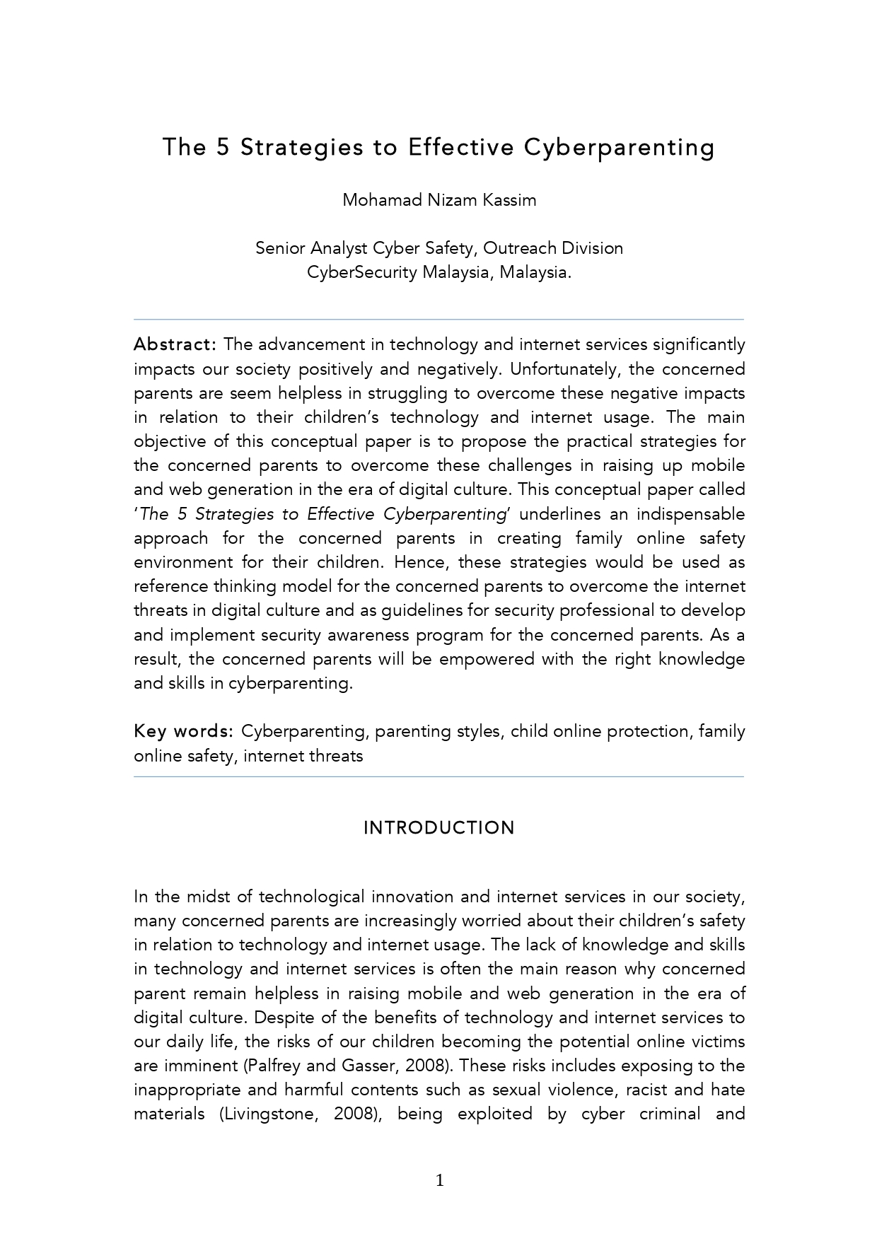 The advancement in technology and internet services significantly impacts our society positively and negatively. Unfortunately, the concerned parents are seem helpless in struggling to overcome these negative impacts in relation to their children’s technology and internet usage. The main objective of this conceptual paper is to propose the practical strategies for the concerned parents to overcome these challenges in raising up mobile and web generation in the era of digital culture. This conceptual paper called ‘The 5 Strategies to Effective Cyberparenting’ underlines an indispensable approach for the concerned parents in creating family online safety environment for their children. Hence, these strategies would be used as reference thinking model for the concerned parents to overcome the internet threats in digital culture and as guidelines for security professional to develop and implement security awareness program for the concerned parents. As a result, the concerned parents will be empowered with the right knowledge and skills in cyberparenting.