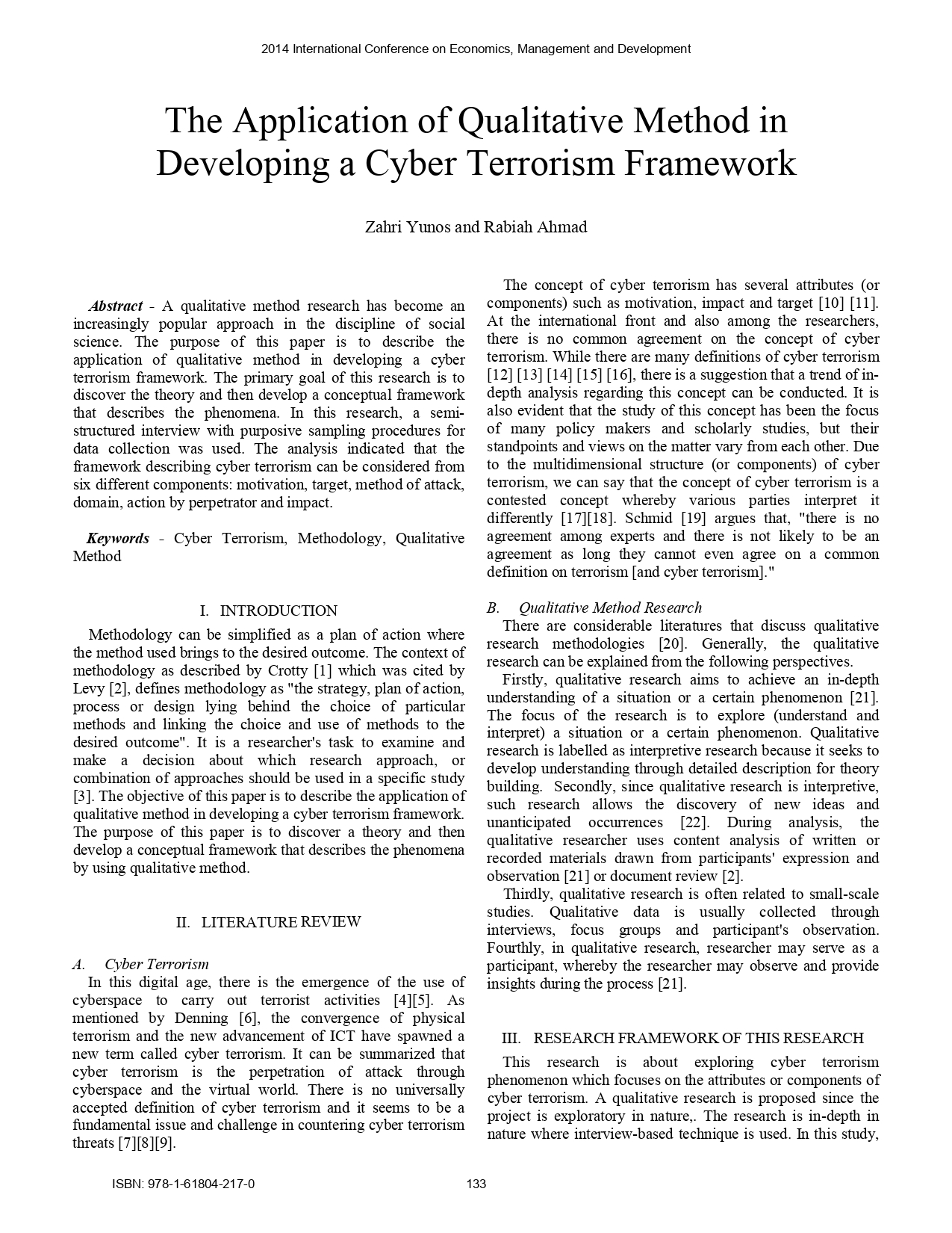 The Application of Qualitative Method in Developing a Cyber Terrorism Framework