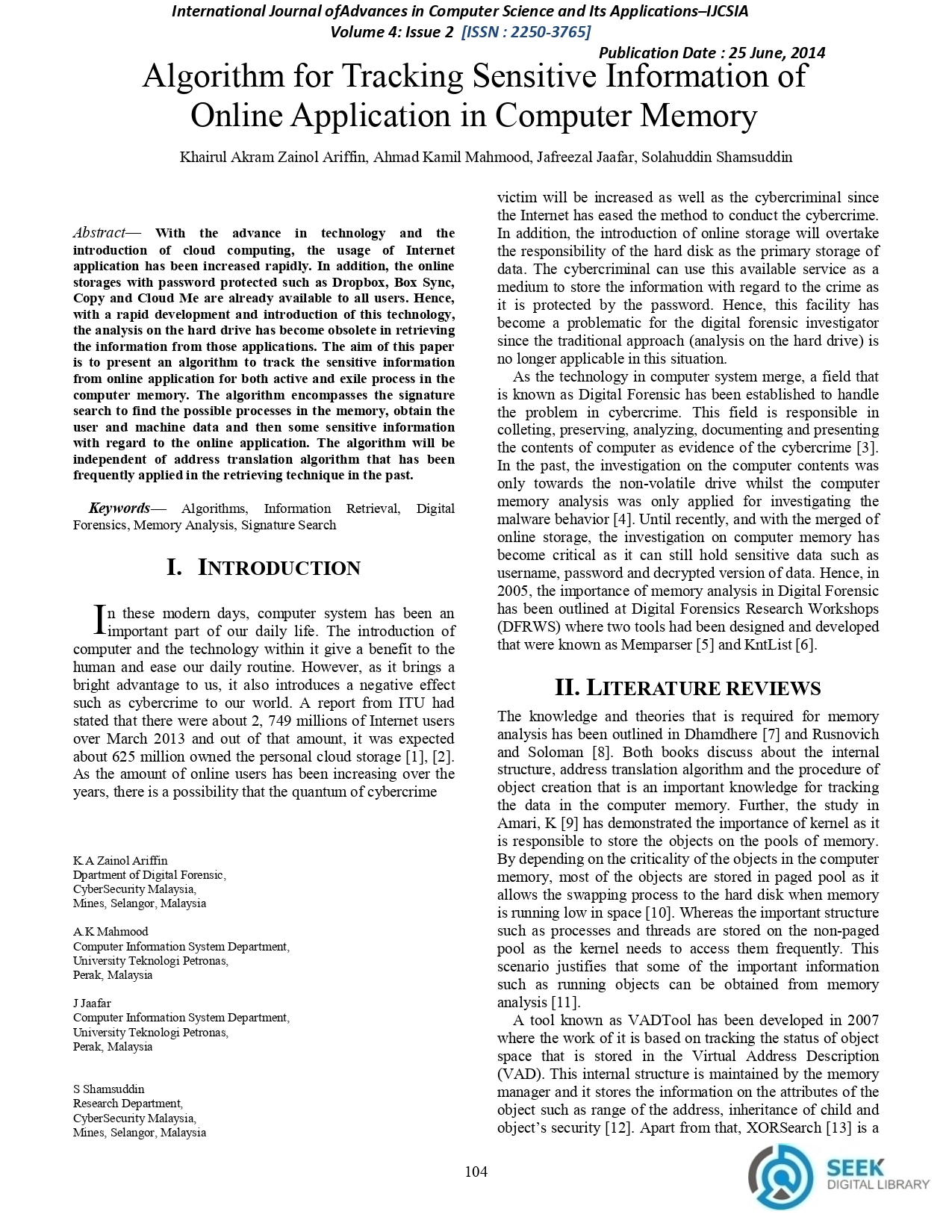 Get latest Journal & Conference Proceeding Publications related to Cybersecurity Malaysia here