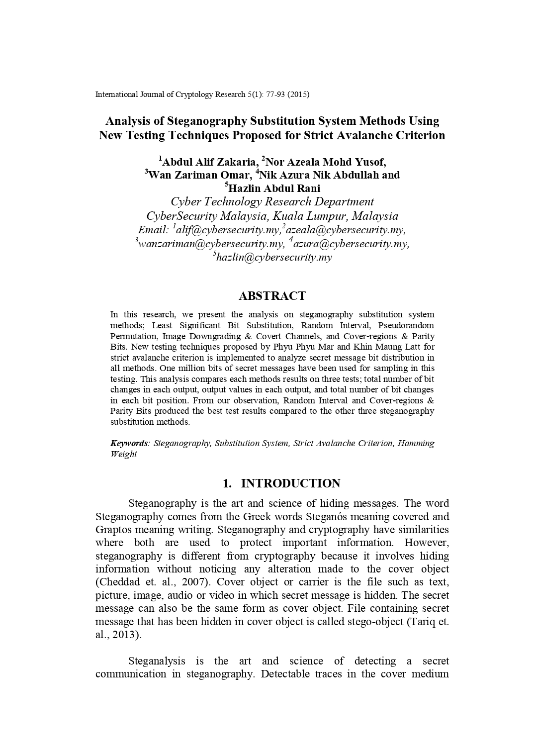 Publication : International Journal of Cryptology Research No 5 Issue 1