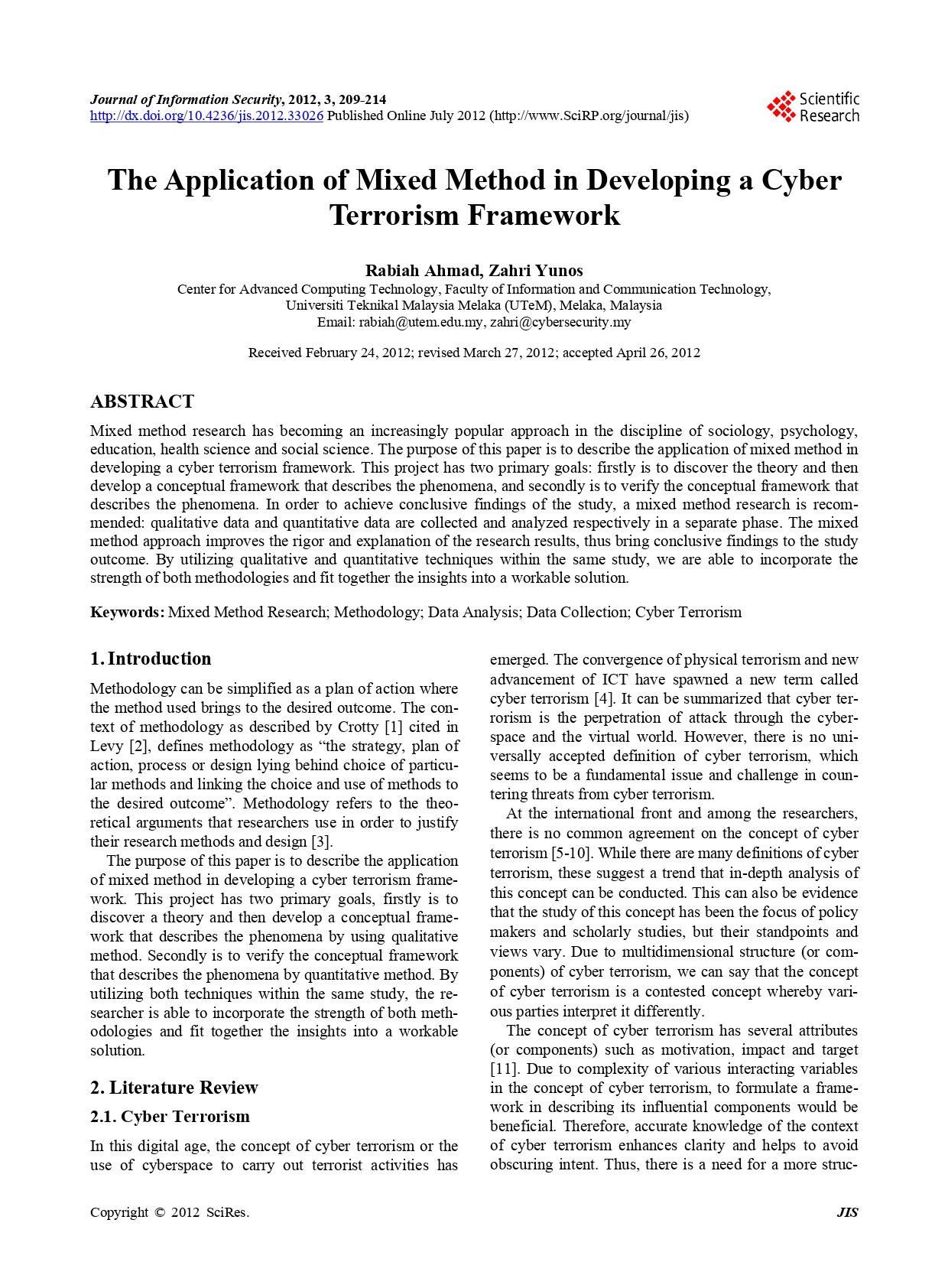 Application of Mixed Method in Developing a Cyber Terrorism Framework
