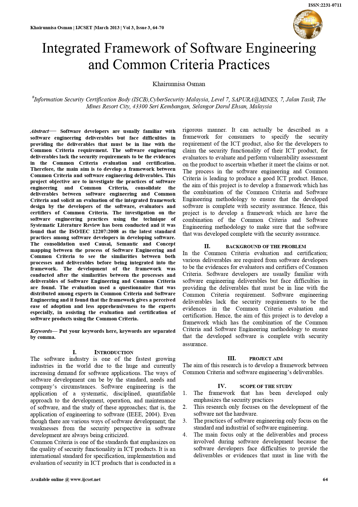 Integrated Framework of Software Engineering and Common Criteria Practices